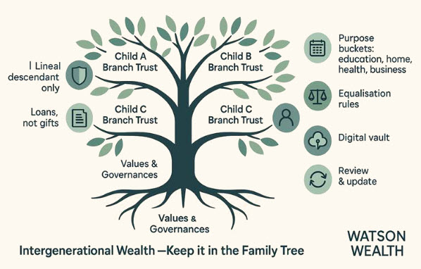 The families who thrive are the ones who plan before the inheritance arrives—mapping the family tree, locking in control, setting simple rules that protect today and empower tomorrow.